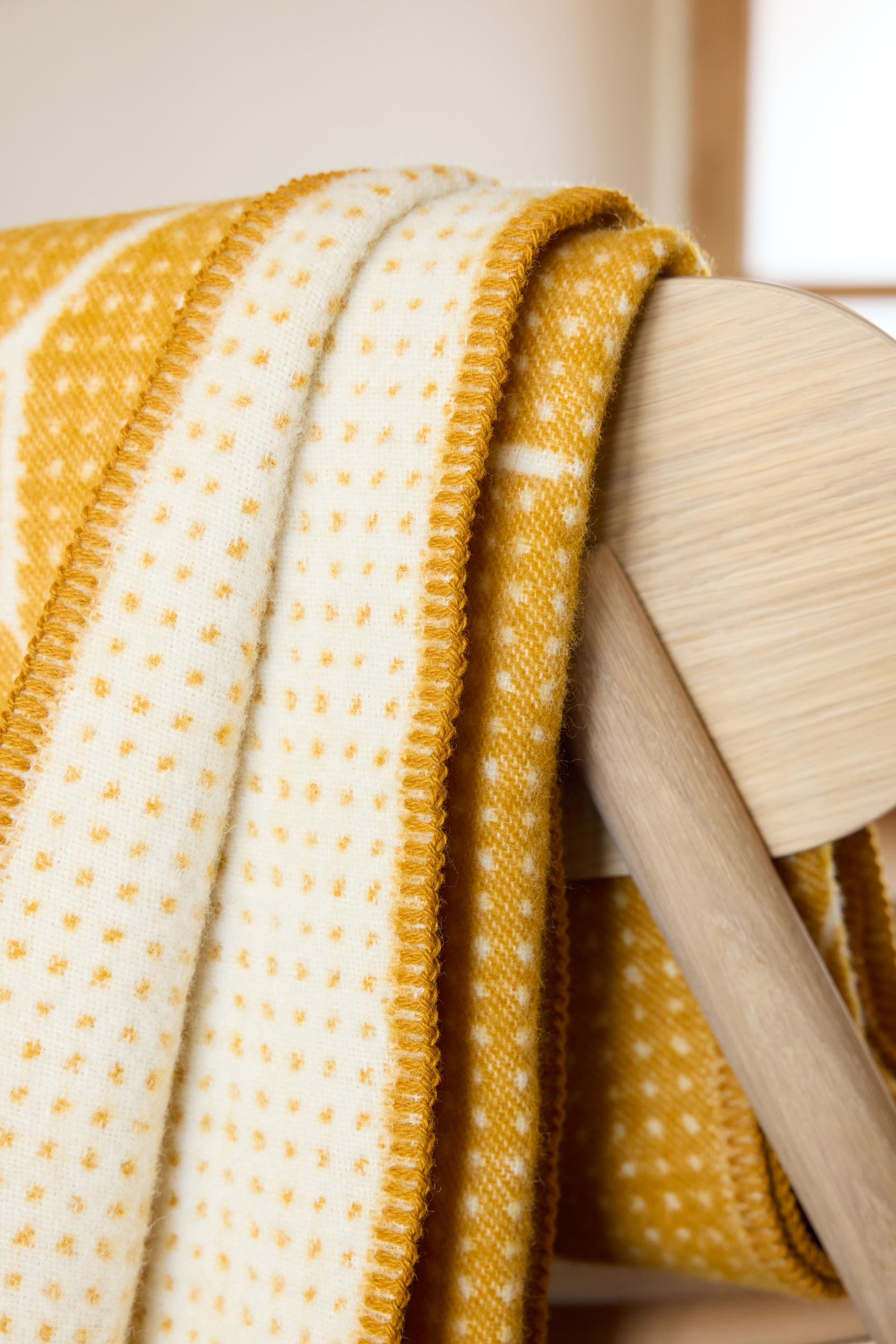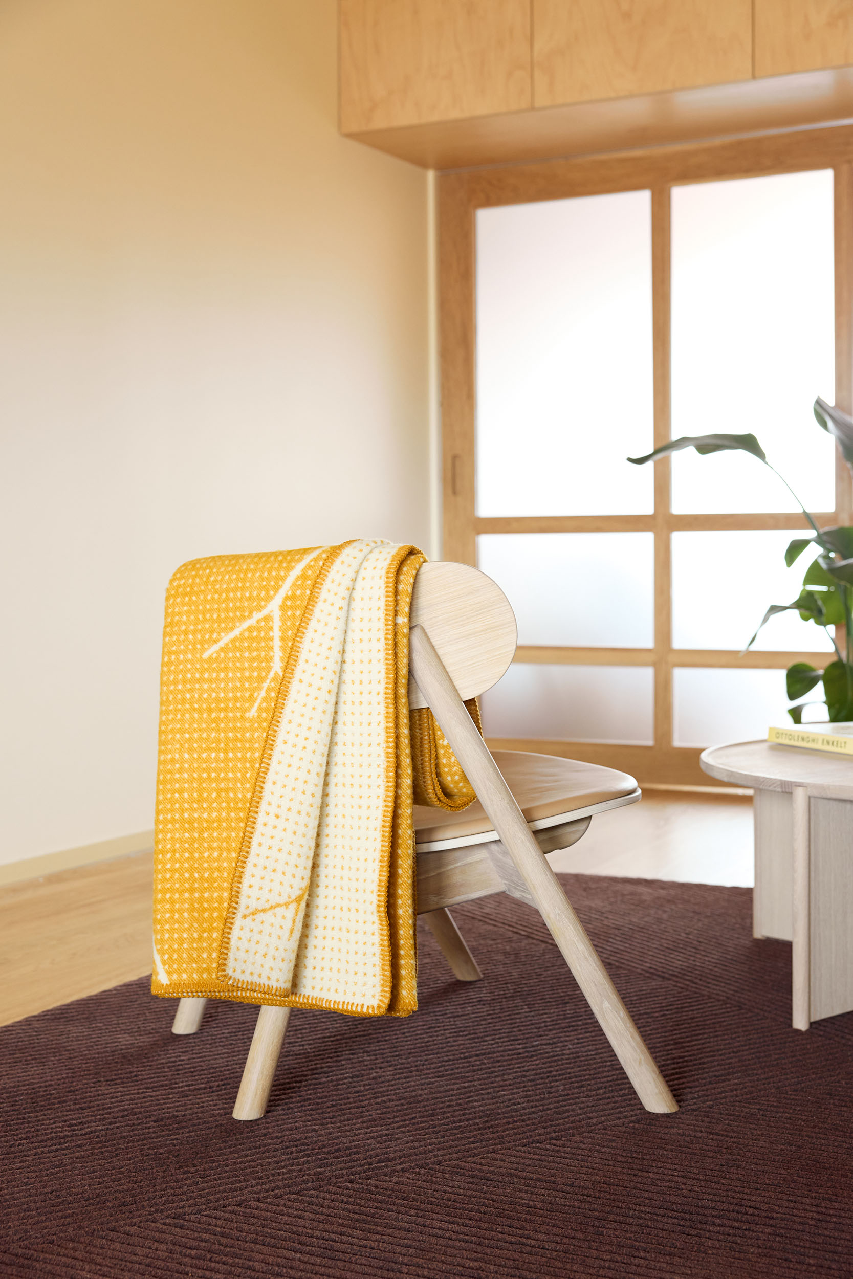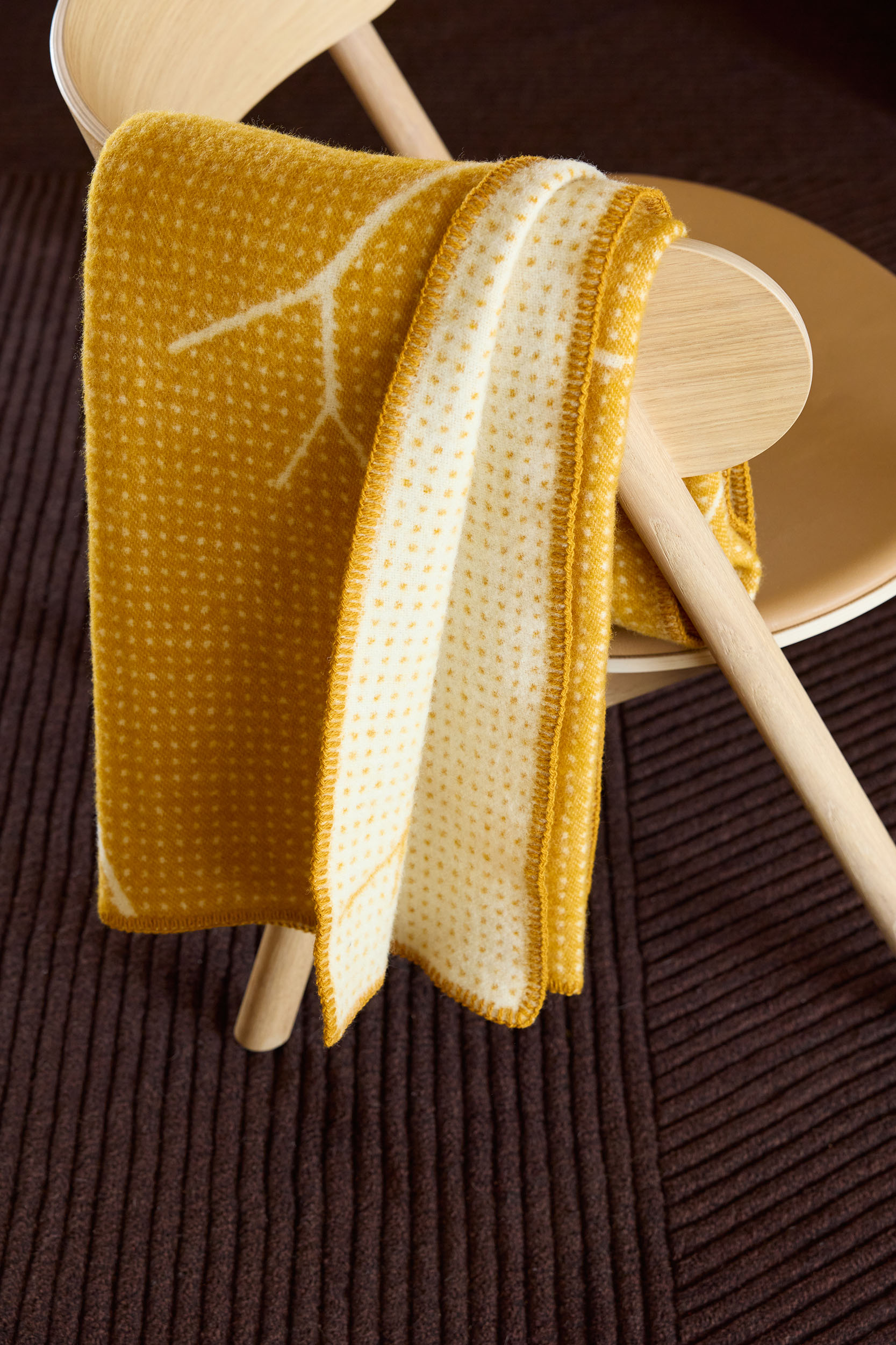 Crafted from premium New Zealand wool, Fall features a dual-sided weave that plays with contrasting tones. To maintain its clean, contemporary edge, traditional fringes have been replaced with tonal decorative stitching on all four sides, framing the intricate motif and allowing the design to take center stage. Whether draped over a sofa or wrapped around your shoulders, Fall brings a touch of Nordic woodland tranquility into the home.